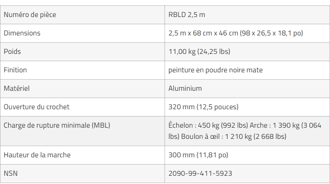 La Double RBL – Échelle d’abordage rigide double Olympia Triumph est une version élargie de l’échelle d’abordage rigide standard, développée pour accélérer le déploiement des équipes lors des opérations d’accès et d’embarquement maritime.