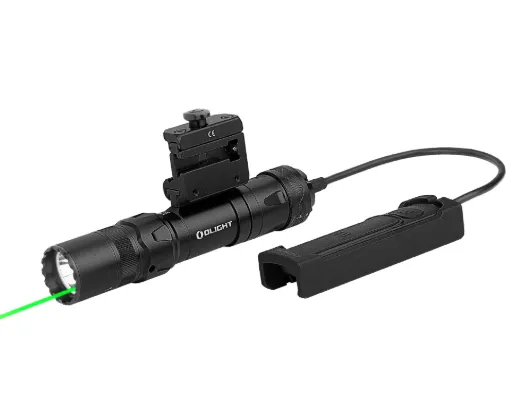 2 sources lumineuses : éclairage LED blanc (avec 1000 lumens max. et 180 mètres de portée) et faisceau laser vert pour assurer une visée précise.