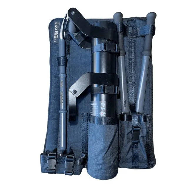 Kit effraction de chez Libervit. Le kit EBP52 est équipé d'un bélier, d'un coupe boulons, d'un levier et d'un sac tactique.