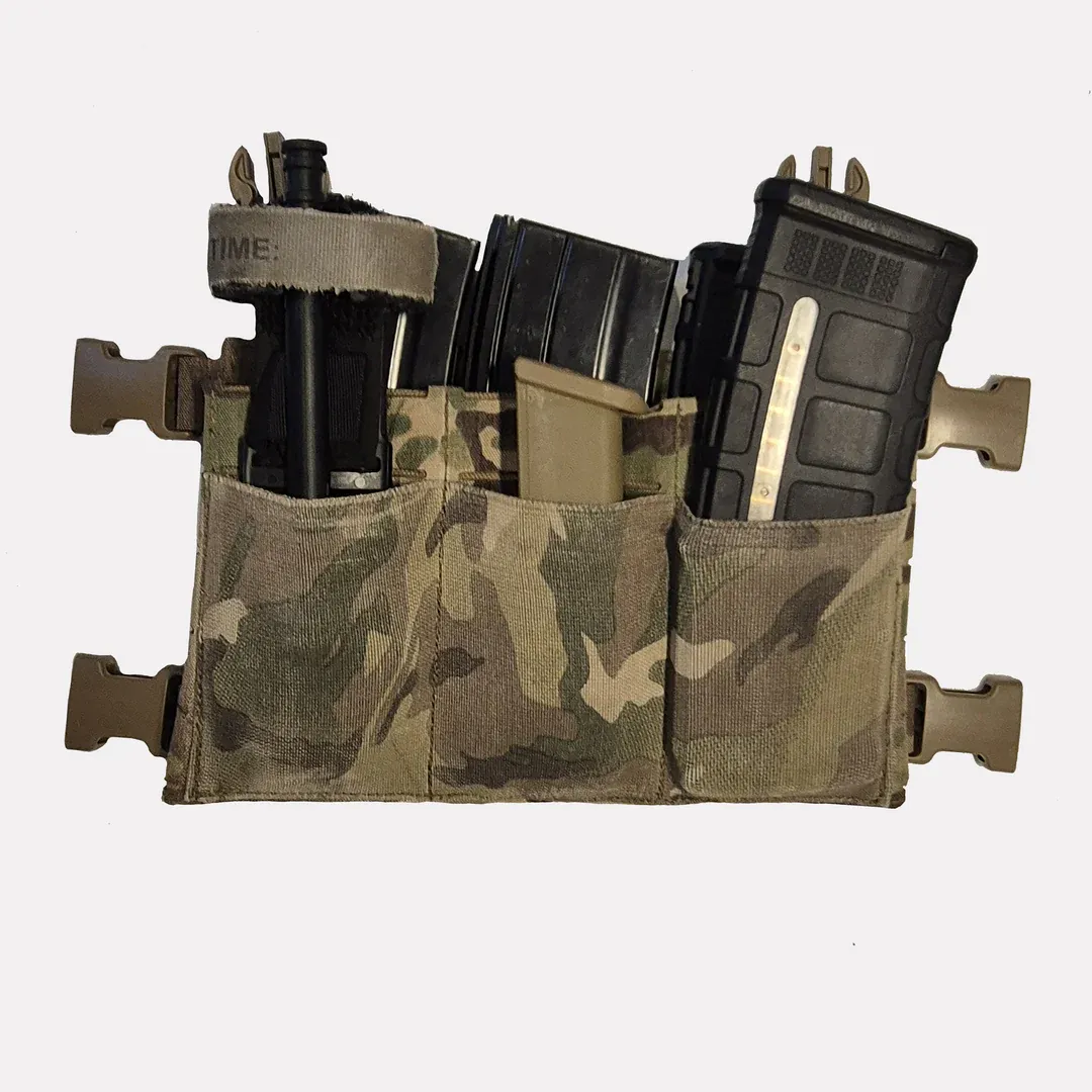 Le Multipurpose front panel a été conçu pour disposer d'une grande polyvalence. Sa partie principale permet d'accueillir un insert pour 3 chargeurs 5.56.