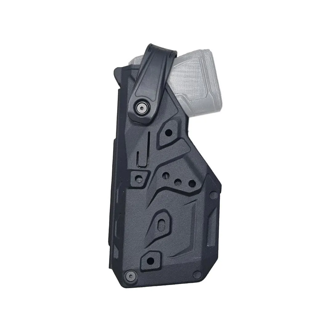 Holster rigide Moulé en Polymère injecté Noir pour TASER X7 de Niveau II. Il est équipe d’origine d’une fixation Rigide MOLLE UBM. L’étrier ROTO bascule vers l’avant par simple pression du pouce et se remet en position par simple traction de la main. Une vis de serrage en bas de l'Holster, système STR, permet de régler la force de rétention du TASER lors dés dégainés. Le Passant Molle UBM permet aussi d’orienter l’inclinaison de l'holster grâce à la clé allen fournie