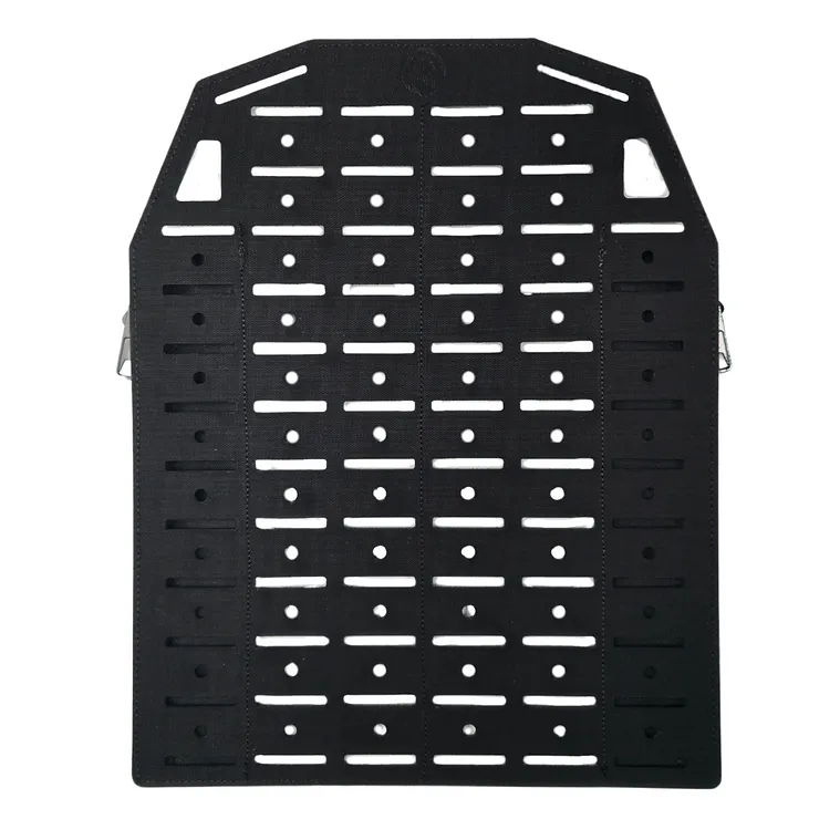 Les découpes MOLLE laser offrent une compatibilité universelle avec vos poches, tandis que des ouvertures circulaires permettent d’ajouter des mâchoires type Quick Fist pour fixer des outils spécifiques (vendues séparément).