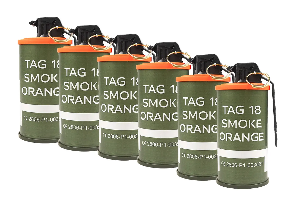 Pack de 6 Grenades Fumigenes TAG 18 SMOKE ORANGE de chez TAG INNOVATION.