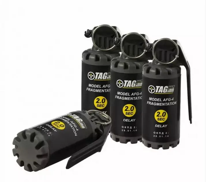 Cette grenade a fragmentation AFG-4 fabriquee par TAGinn dispose d'une detonation qui intervient apres un delai de 2 secondes. Le retardateur est lance sous la pression du gaz genere par l'element pyrotechnique situe dans le boitier de la grenade. Une fois la goupille enlevee et le delai de 2 secondes ecoule, la grenade emet une detonation a fragmentation, ideal pour prendre le dessus sur vos adversaires lors de vos parties d'airsoft. Simple d'utilisation, il vous suffira de degoupiller la grenade puis de la lancer dans un grand espace ouvert afin d'eviter tout accident. L'utilisation de gants de protection, de bouchons d'oreilles et de lunettes de protection est fortement recommandee.