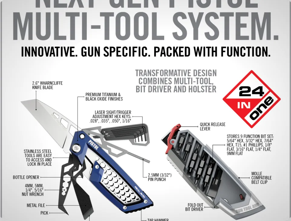 Le GUN TOOL AMP PISTOLET appartenant à la nouvelle génération d'outils multifonction est dédié à l'arme de poing.