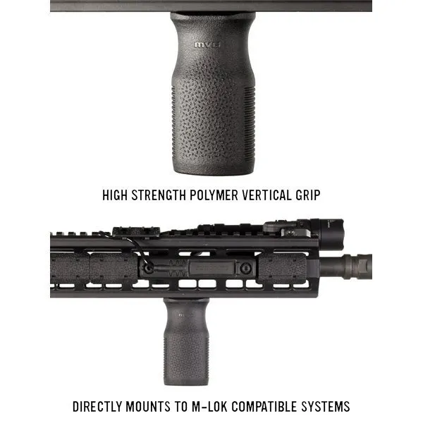 Poignée verticale légère qui se fixe directement sur le garde main de l'arme qui doit être compatible M-LOK® et ne nécessite aucun rail Picatinny supplémentaire. Fabriqué en polymère de haute qualité, le M-LOK® MVG® utilise une nouvelle texture Magpul TSP.