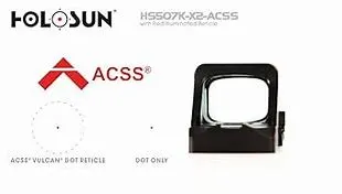 Fruit d'une collaboration entre Holosun Optics et Primary Arms Optics, le viseur HE507K-GR-X2 à éclairage vert et réticule ACSS® Vulcan® Dot intègre le système de visée révolutionnaire Vulcan à un format micro-reflex.