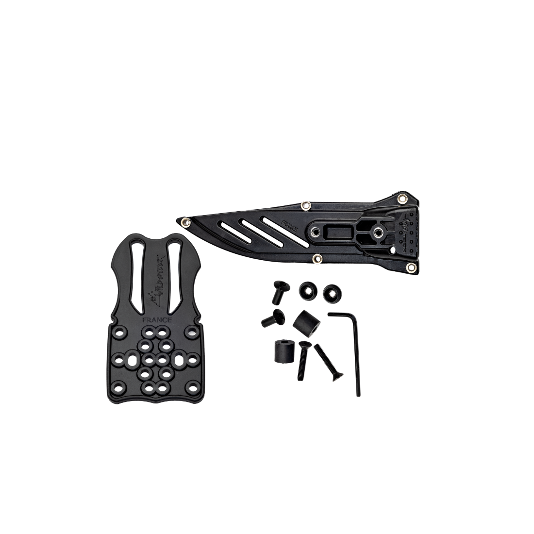 L' étui tactique en POM (PolyOxyde de Méthylène), disponible en noir ou coyote, est doté d'une boucle multiposition et d'une quincaillerie permettant :