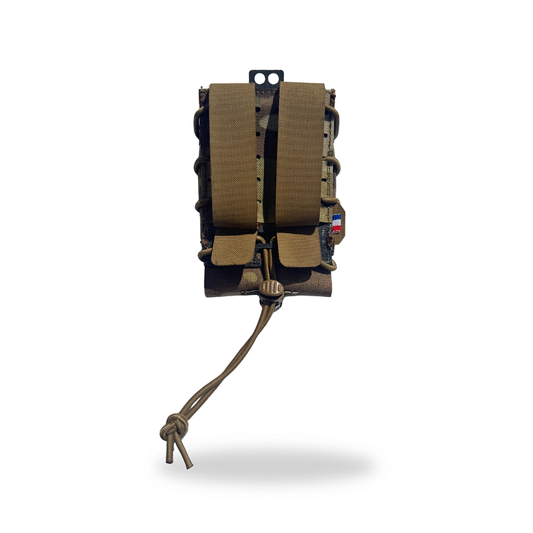 Pour maximiser le maintien, deux passages en haut de la poche permettent de monter un cordon de rétention additionnel, fourni avec chaque porte chargeur.