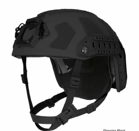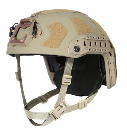 Casque balistique hybride composé de carbone, polyéthylène unidirectionnel et d’aramide