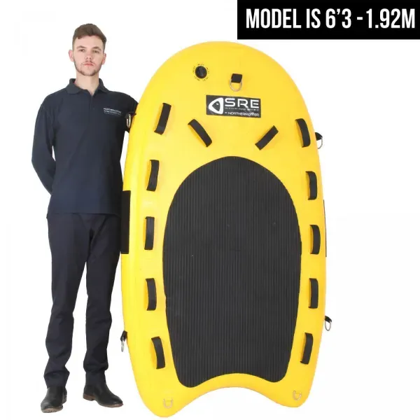 Remorquée derrière un véhicule nautique à moteur (PWC), la planche peut atteindre la victime de manière rapide et agile, ce qui est essentiel dans les scénarios de sauvetage en eau vive/agitée.
