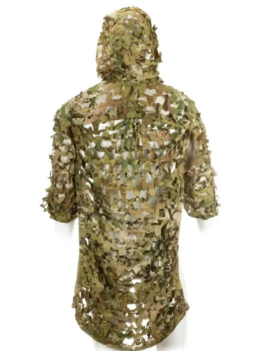 Les tireurs d'élite ne sont pas les seuls sur le champ de bataille à bénéficier de la dissimulation. Le Compact Assault Ghillie est un concept léger et peu encombrant destiné à dissimuler les assaillants. Il est léger et suffisamment petit pour être emporté avec vous ou porté à plein temps. Les formes 3D découpées au laser brisent physiquement les contours humains les plus visibles : la tête et les épaules. Le panneau arrière amovible à double couche se replie vers l'avant pour dissimuler une arme d'épaule ou des jumelles. La coupe ouverte et les matériaux légers permettent une circulation d'air massive et évitent la surchauffe. Le sac de rangement se monte sur MOLLE ou sur une ceinture. Fabriqué aux États-Unis à partir de matériaux américains.