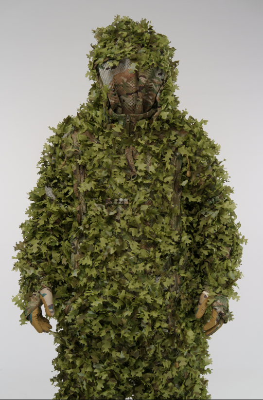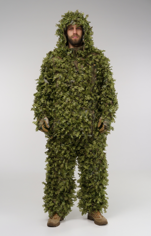 Combinaison de camouflage avancée – légère, respirante et renforcée aux endroits stratégiques. Elle est dotée de zones MOLLE, d'un voile intégré et d'un accès complet à l'équipement – conçue pour les professionnels exigeant discrétion et confort sur le terrain.
