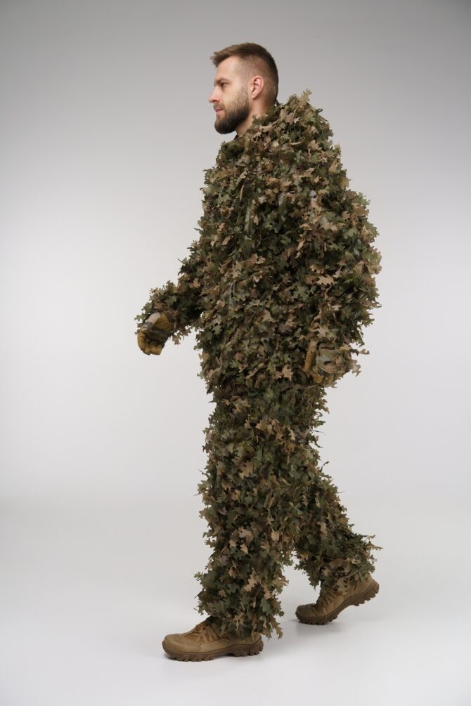 Combinaison de camouflage avancée – légère, respirante et renforcée aux endroits stratégiques. Elle est dotée de zones MOLLE, d'un voile intégré et d'un accès complet à l'équipement – conçue pour les professionnels exigeant discrétion et confort sur le terrain.