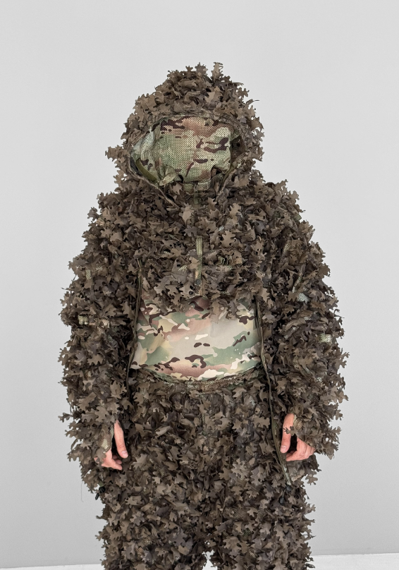 Combinaison de camouflage avancée – légère, respirante et renforcée aux endroits stratégiques. Elle est dotée de zones MOLLE, d'un voile intégré et d'un accès complet à l'équipement – conçue pour les professionnels exigeant discrétion et confort sur le terrain.