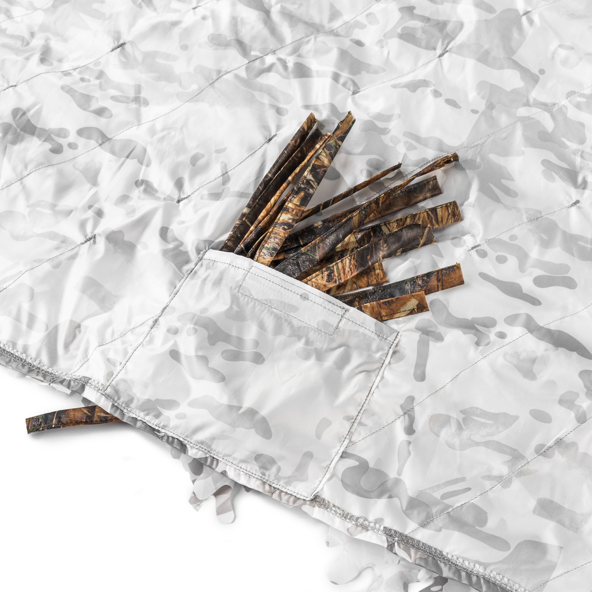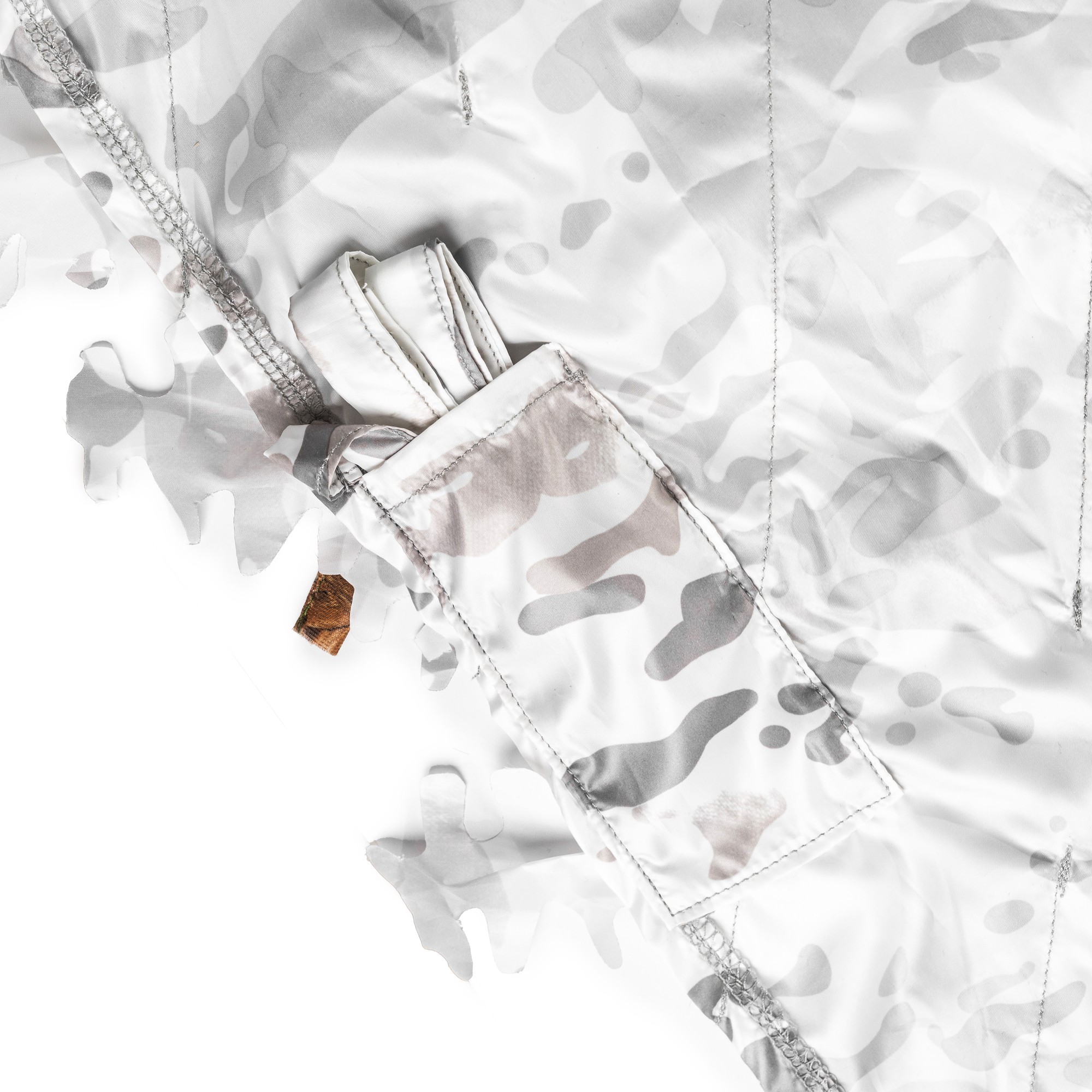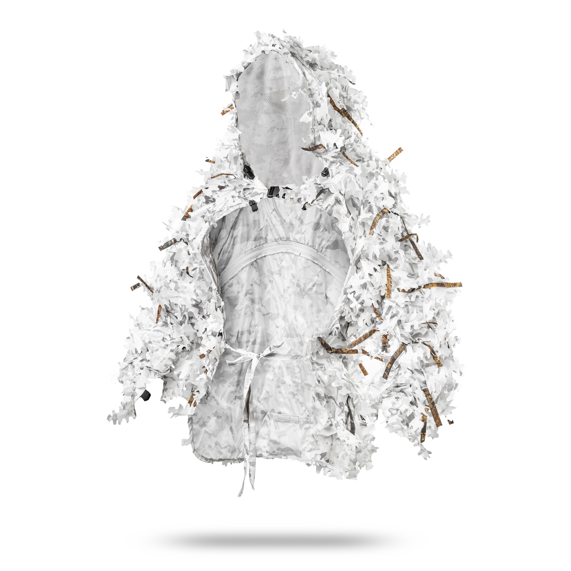 Capuche et manches ajustables, coudes renforcés et système MOLLE intégré pour la fixation de camouflage naturel. Poches à accès rapide, filet facial et cordon de serrage pour un ajustement parfait et un camouflage fiable sur tous les terrains.