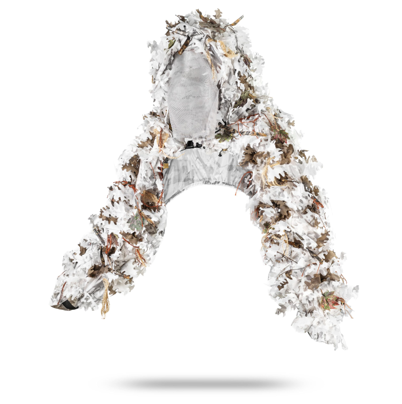 La capuche Viper est une cape de camouflage légère et respirante, conçue pour un déploiement rapide et une mobilité maximale. Son camouflage intègre plus de 10 types de feuilles en coton recyclé, nylon et polyamide, créant un volume naturel et un fondu efficace dans l'environnement. Ses coudes renforcés, ses zones MOLLE et sa capuche ajustable la rendent idéale pour la reconnaissance, l'approche furtive ou comme vêtement à superposer à l'équipement en terrain forestier.