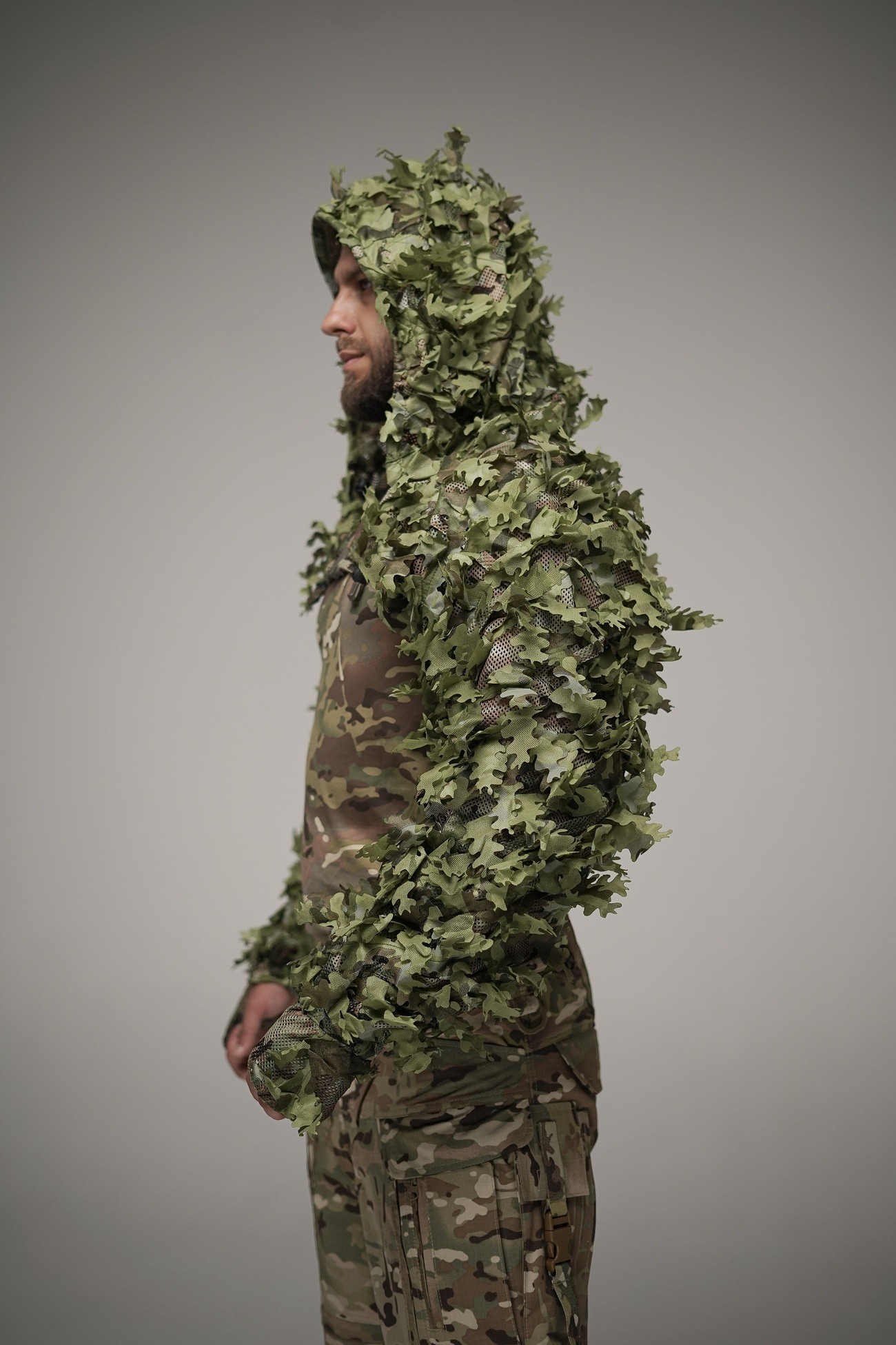 • Système MOLLE complet : Permet la fixation sécurisée de végétation naturelle et d'un camouflage personnalisé en fonction du paysage environnant.