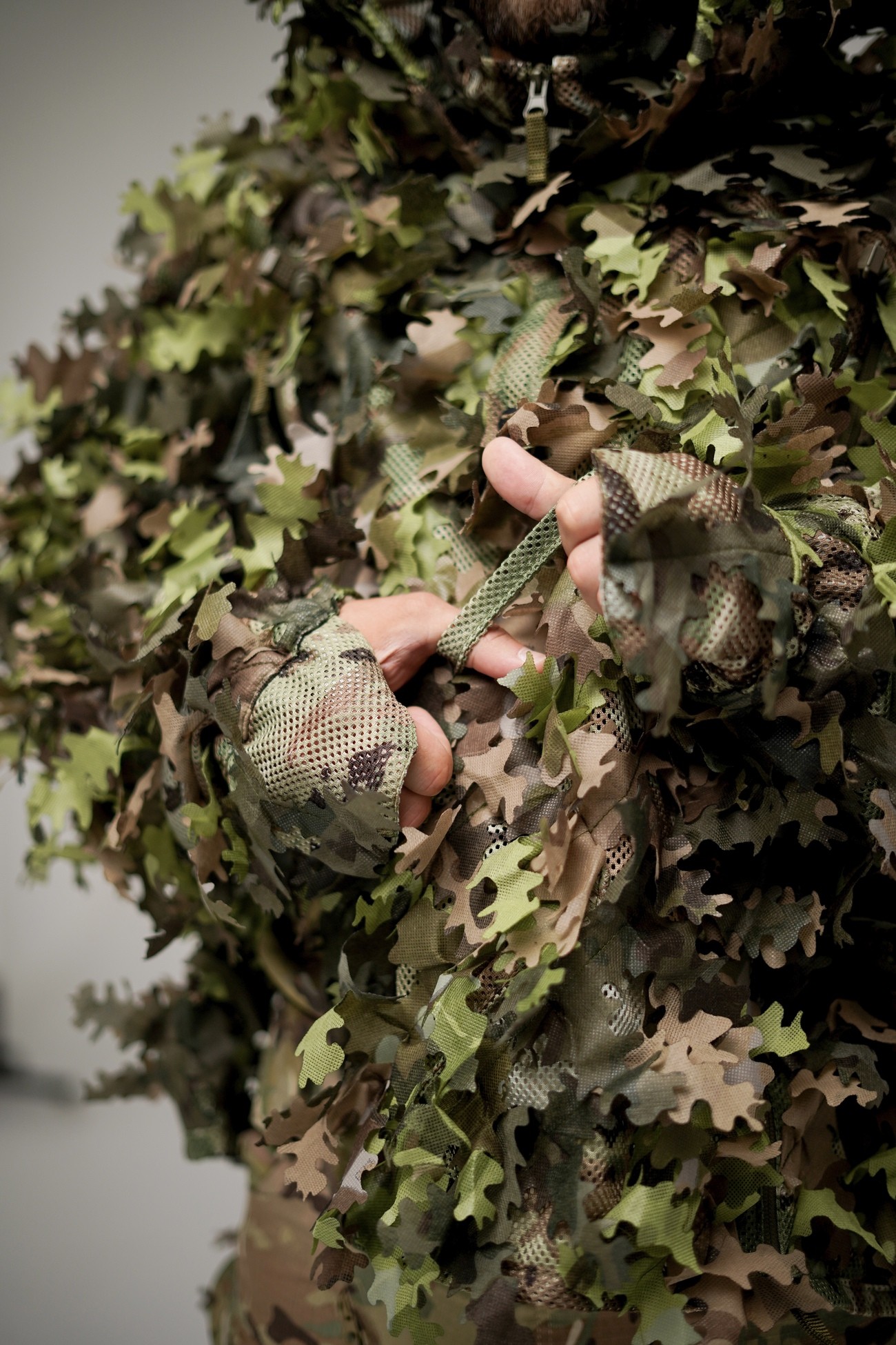 • Voile facial intégré : Le filet de camouflage peut être discrètement rangé dans la capuche et fixé par Velcro lorsqu'il n'est pas utilisé.