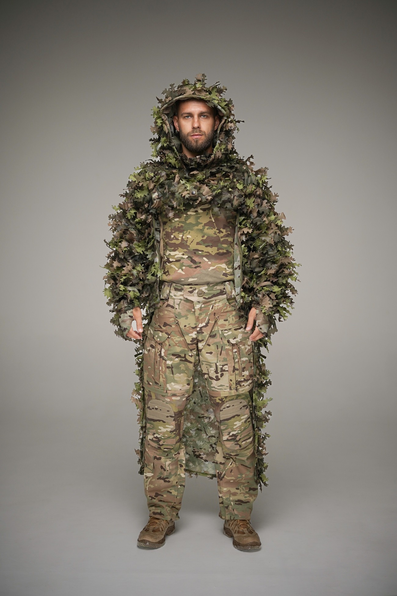 La cape Viper 3-en-1 est une cape de camouflage polyvalente qui se transforme en capuche ou en dos Viper grâce à sa conception modulaire. Fabriquée en nylon Multicam résistant avec des feuilles de camouflage 100 % coton recyclé, elle est dotée d'une capuche à visière flexible, de coudes renforcés, d'une intégration MOLLE complète, d'une capuche et d'un volume ajustables, de passants de fixation aux manches et d'un voile de visage pliable. Taille unique, disponible en plusieurs coloris, avec possibilité de confection sur mesure.
